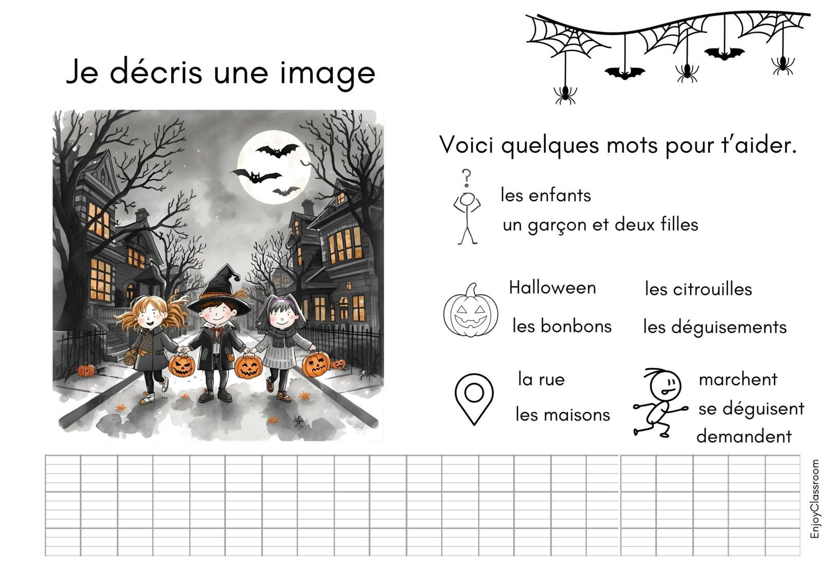 Halloween arrive à grands pas et j'ai décidé de faire décrire à mes élèves une image sur cette thématique à leur retour de vacances.